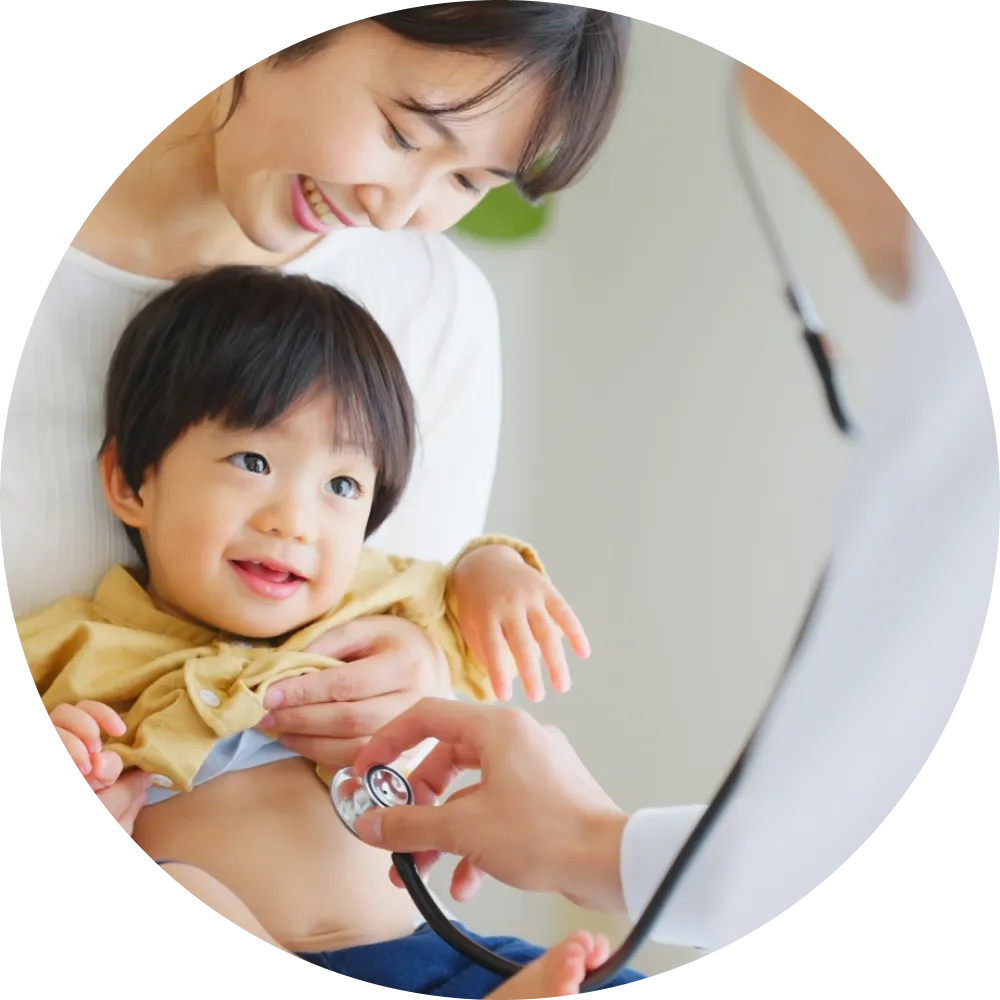 風邪、気管支炎、肺炎、胃腸炎、その他感染症はもちろん、お子さまに関して心配なことは何でもご相談ください。小児科専門医が診療を行い、皆さまがご安心いただけるように対応いたします。