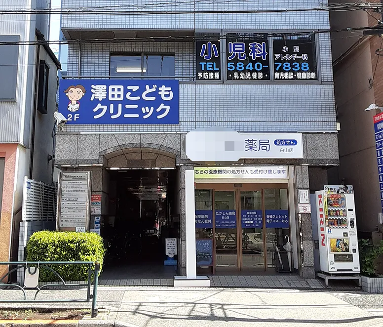 都営三田線の「白山」駅前にある坂を少し下って左手にございます。 ビル2Fの大きな看板が目印です。